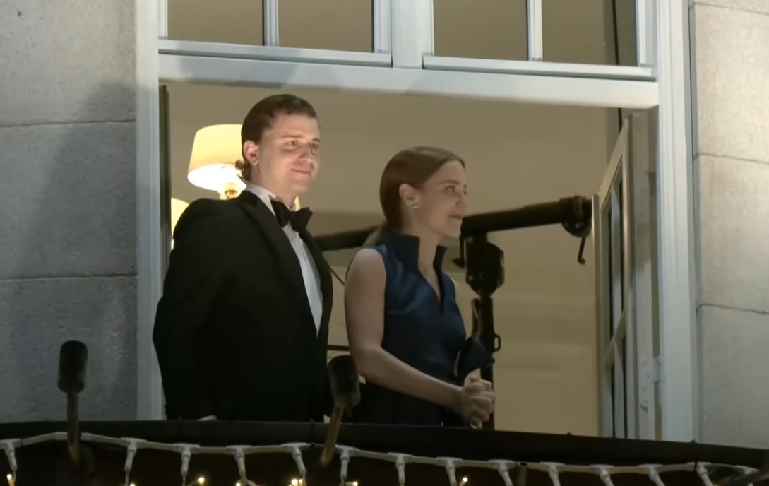 Los hermanos Sosa Machado, Ricardo y Ana Corina, en representación de su madre y su familia, se asomaron en el balcón del Grand Hotel en Oslo para recibir a los manifestantes venezolanos y de otras nacionalidades que se encuentran allí.