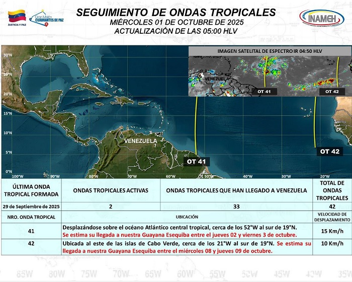 ` Inameh alerta lluvias de intensidad variable por llegada de ondas tropicales 41 y 42 - Monitoreamos