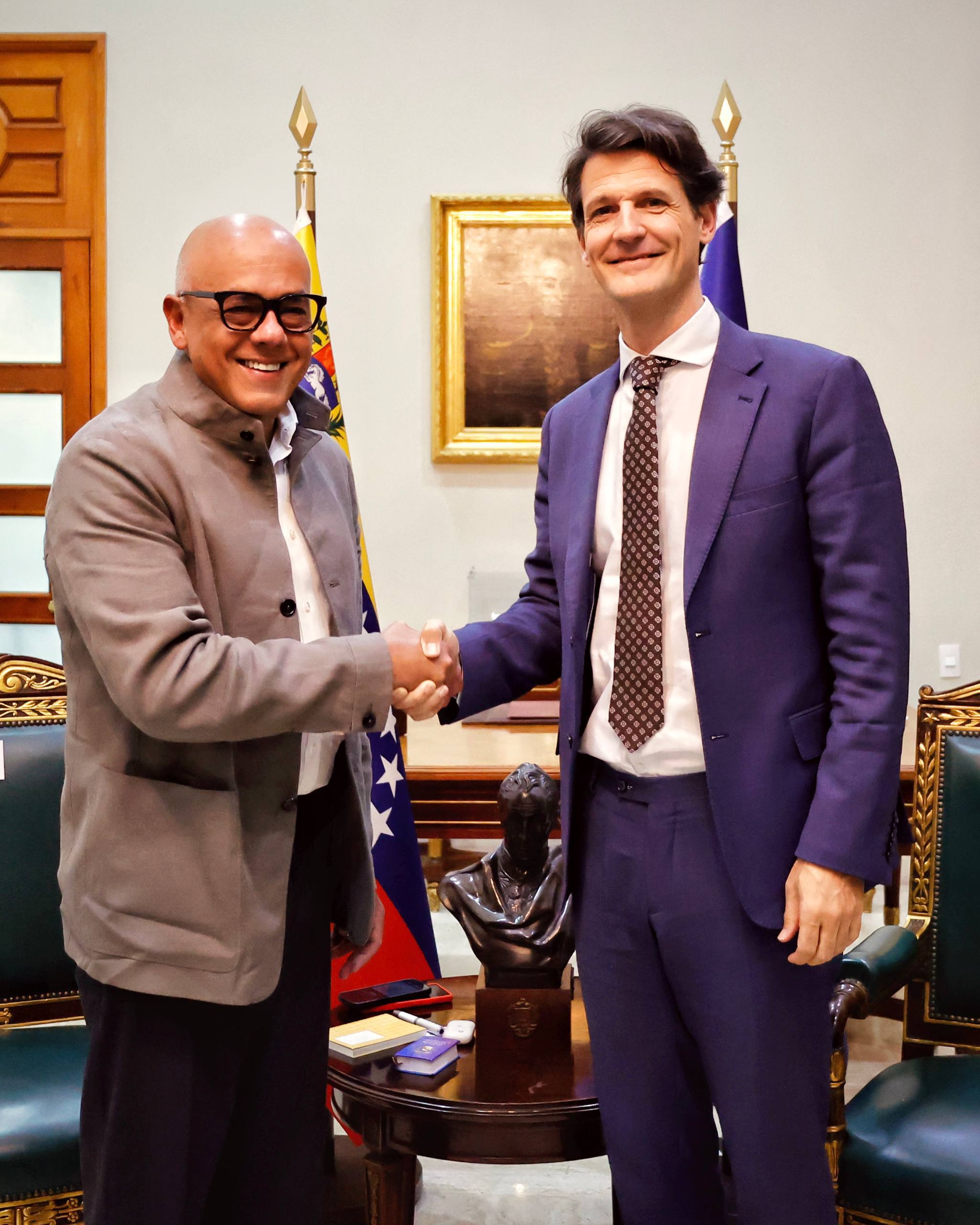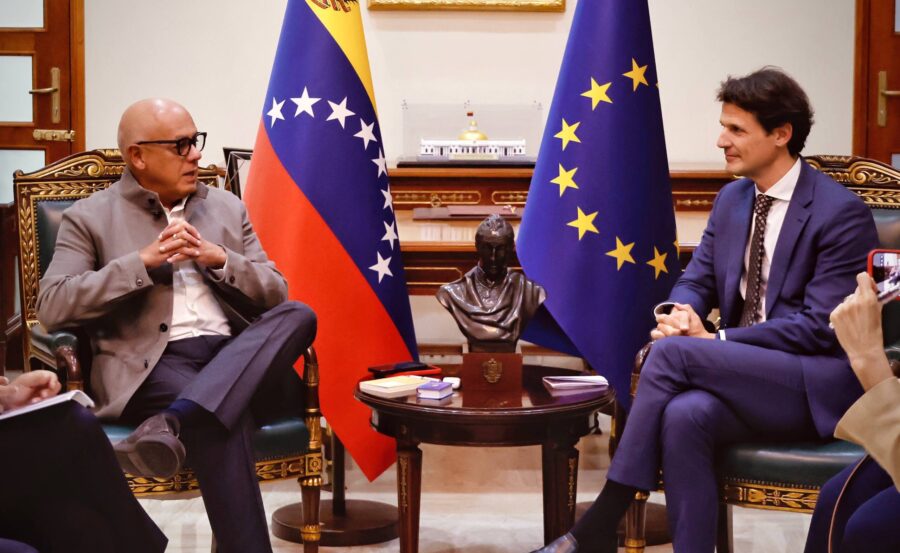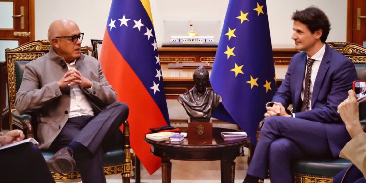 El presidente de la Asamblea Nacional chavista, Jorge Rodríguez, sostuvo este jueves una reunión con los delegados del Servicio Exterior de la Unión Europea en la sede del Palacio Federal Legislativo.