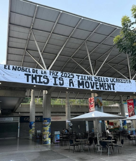 ` La pancarta en la UCAB: "El Nobel de la Paz 2025 tiene sello ucabista. This is a movement" - Monitoreamos