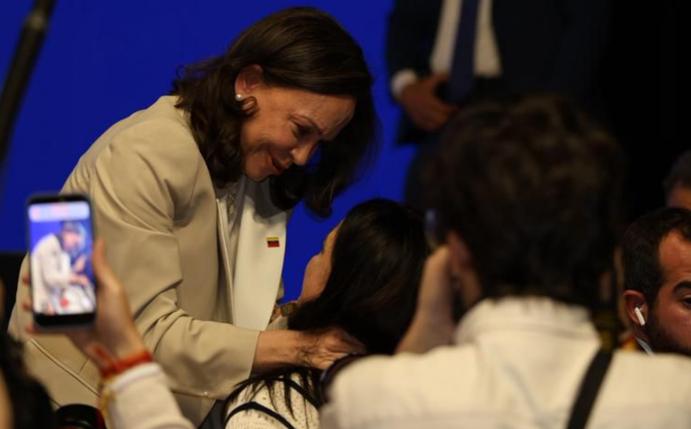 María Corina se acercó a su compañera y se abrazaron, entre aplausos de los presentes. Tras el emotivo reencuentro, la líder opositora retomó la palabra visiblemente conmovida.