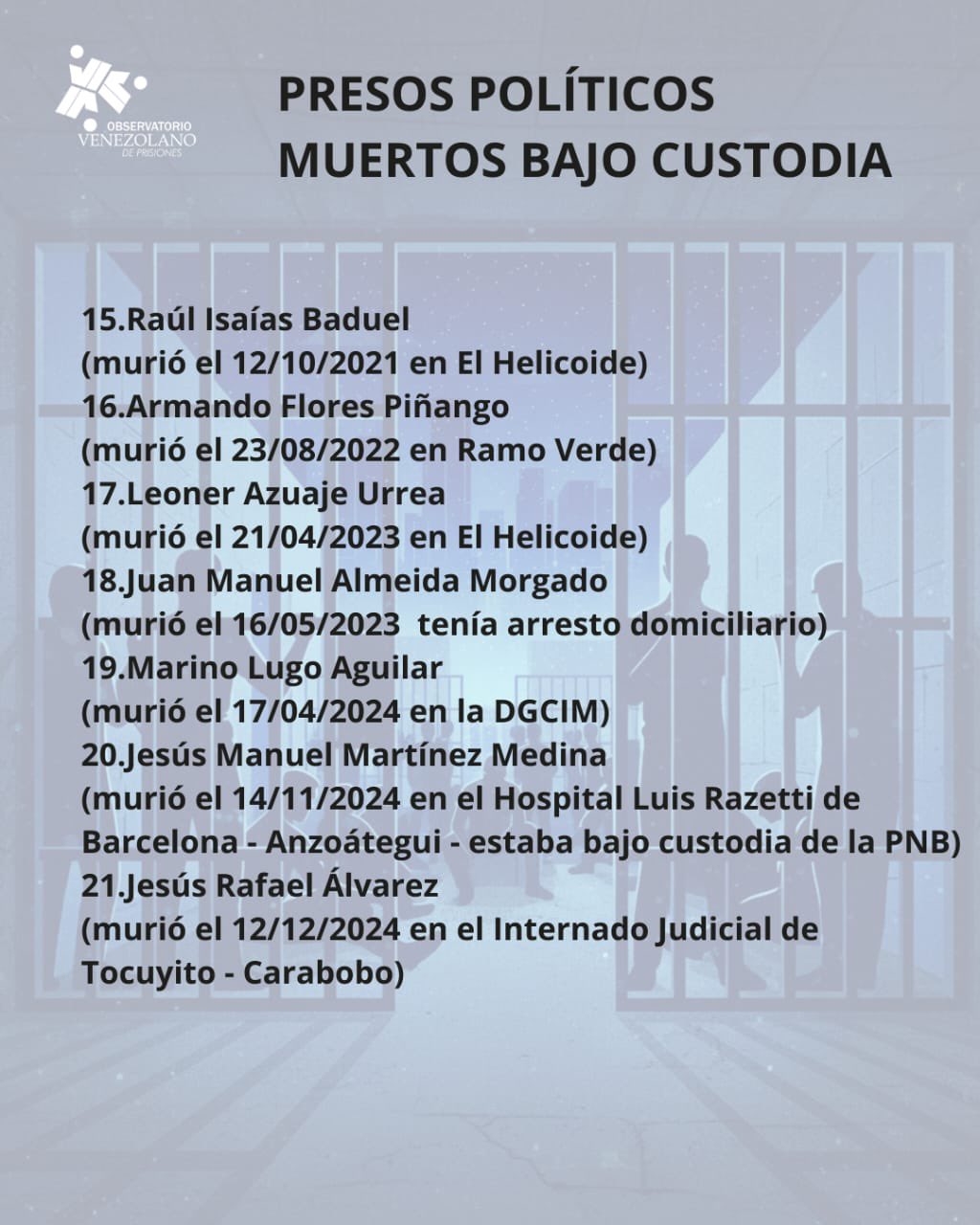 ` ONG denuncia que el régimen de Maduro debe responder por los 25 presos políticos muertos en custodia desde 2015 - Monitoreamos