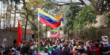Venezuela Militantes chavistas protestaron frente a la Embajada de Irán contra la muerte de Alí Jameneí 4 marzo 2026