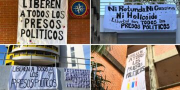Venezuela Estudiantes despliegan pancartas en 11 universidades de Venezuela para exigir la liberación de todos los presos políticos 23 enero 2026
