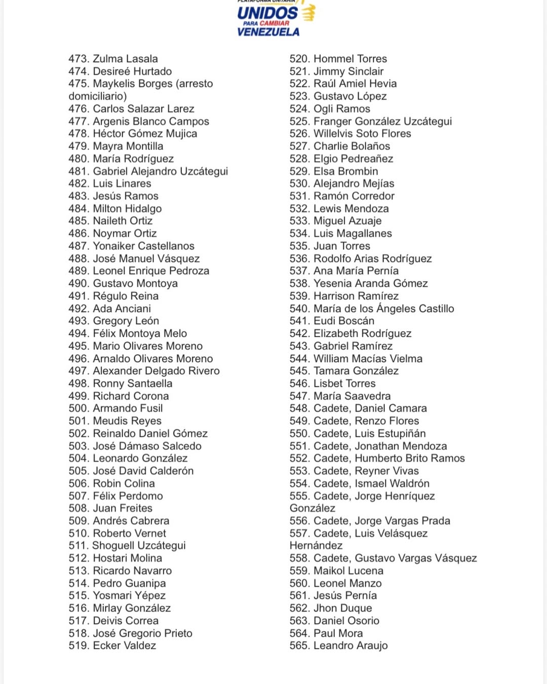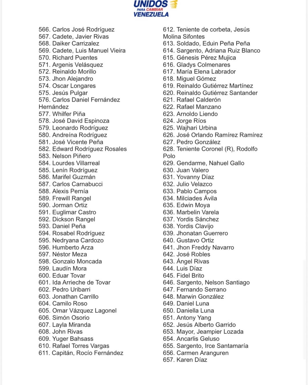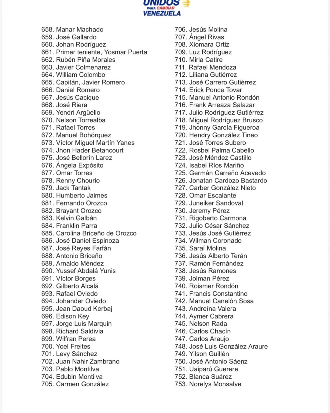 A continuación la lista actualizada de los 758 excarcelados confirmados hasta la fecha: