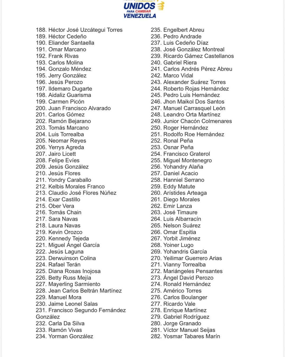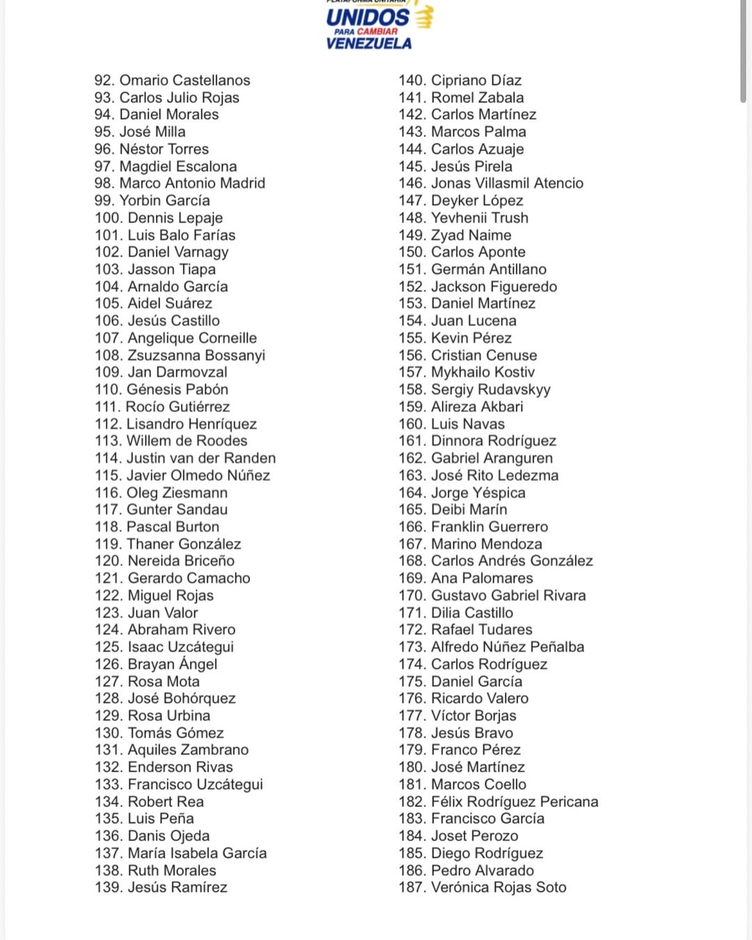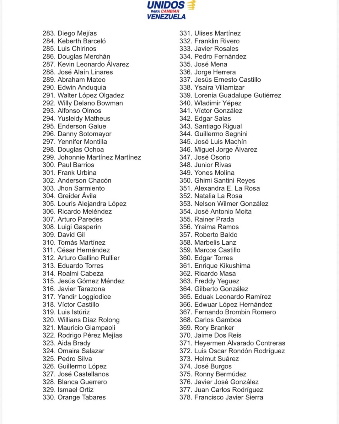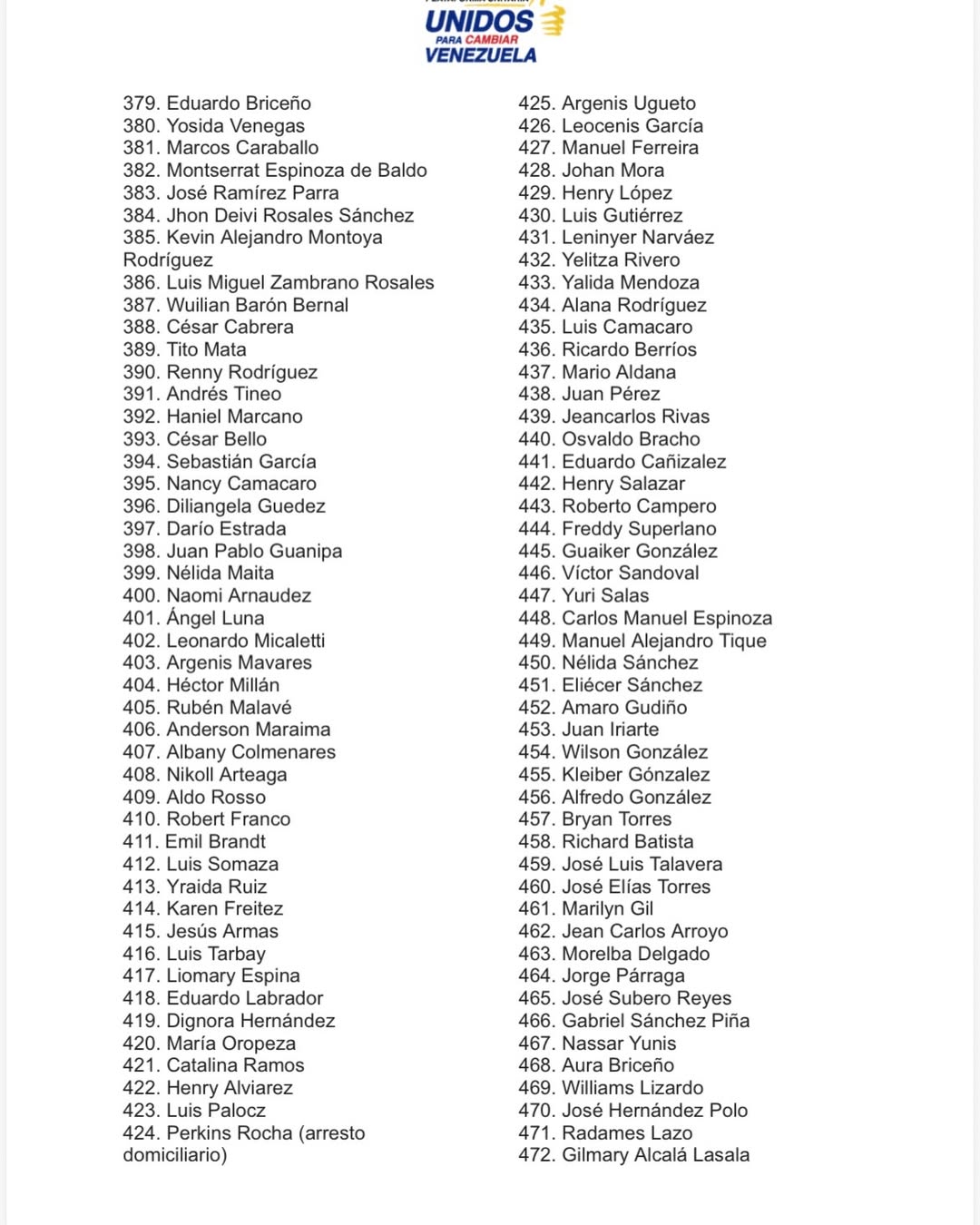 A continuación la lista actualizada de los 758 excarcelados confirmados hasta la fecha:
