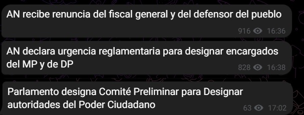 Al respecto, el presidente de la AN chavista, Jorge Rodríguez, explicó que la AN chavista designará a «un encargado para asumir la dirección de la institución de forma temporal debido a la ausencia de un vicefiscal que lo supla en el cargo».